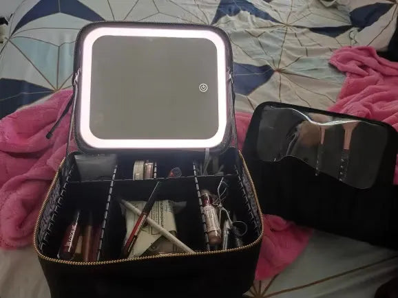 This makes applying my makeup such a breeze! Everything is easy to find and well-lit. Couldn't ask for more in a makeup case. It's chic, functional, and a real lifesaver on trips.